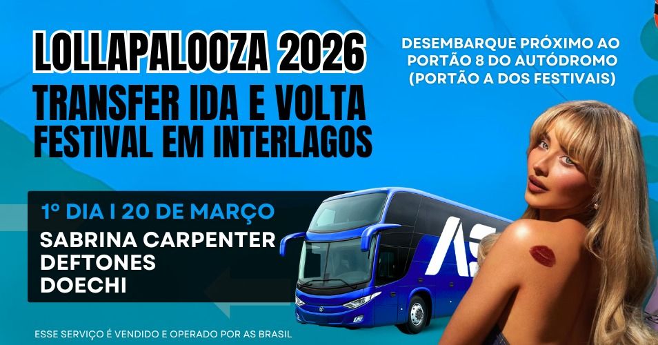 #TransferLollaSP #LollapaloozaBrasil #TransporteFestivalLolla #AutódromoDeInterlagos #MelhorTransporteLolla #LollaInterlagos #ASBrasilShows #LollaLiveInBrazil #Lolla2026 #TeamLolla #ComoChegarNoLolla